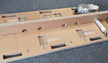 Eine besonders leichte aber dennoch sehr stabile Transportverpackung mit CNC gefrästen Einsätzen aus Wellpappe, haben wir für unseren Kunden Langguth + Co. GmbH gefertigt.